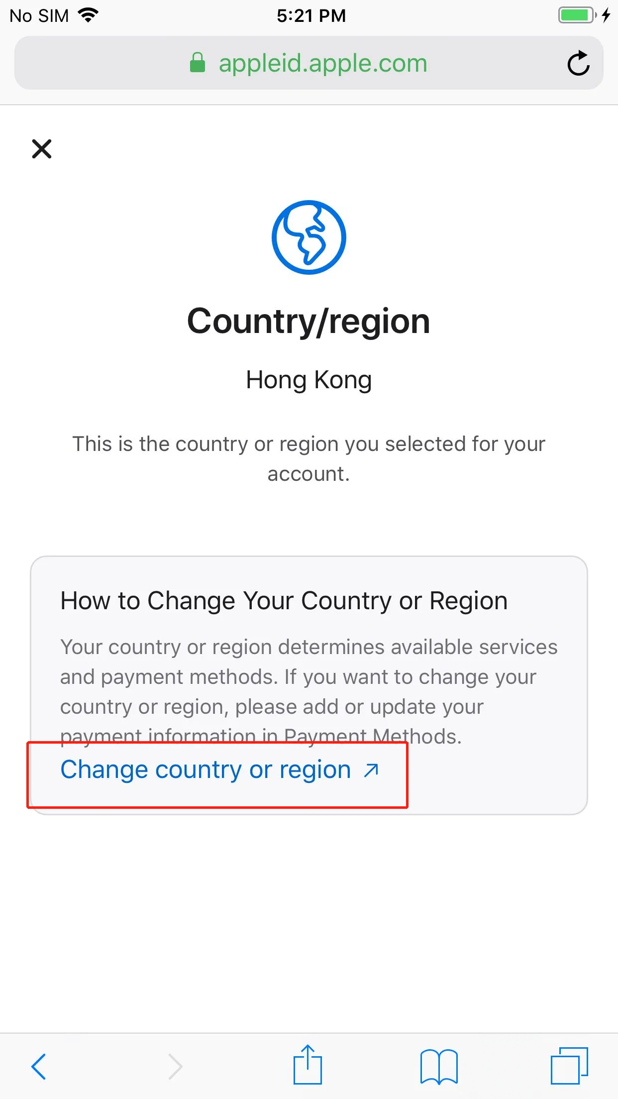 Select "Country/Region" at the personal information page. Enter your Apple ID and Click "Sign in".