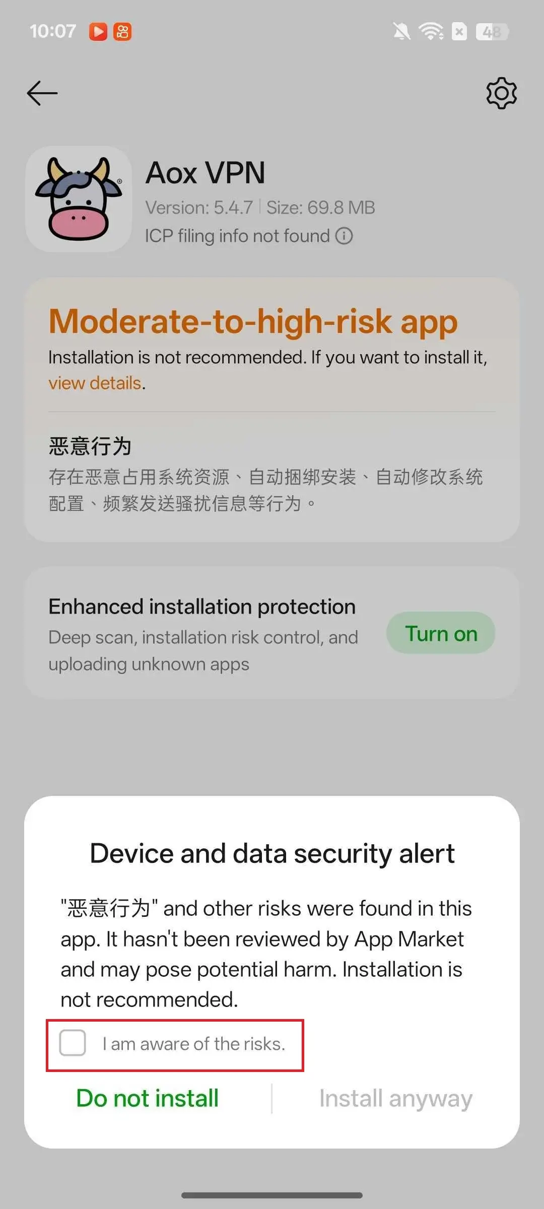Click I acknowledge the application risks.