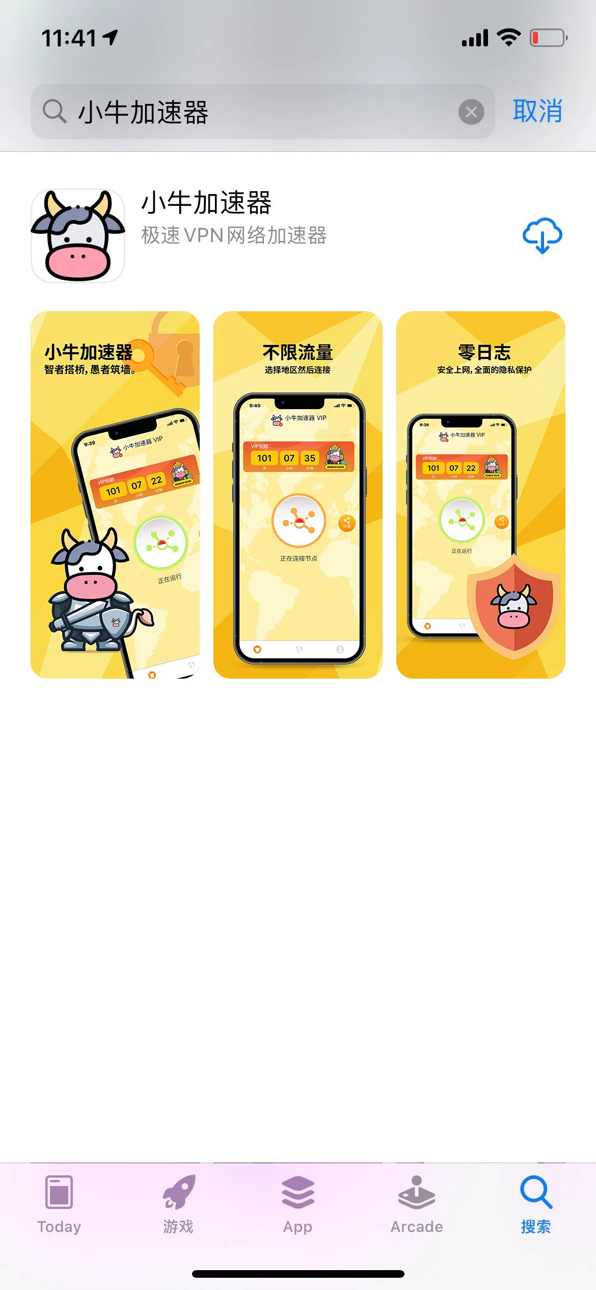 当您发现商店内容字体变为繁体字后证明您已经切换到香港地区了。此时您可以在商店中自行搜索小牛加速器进行下载。