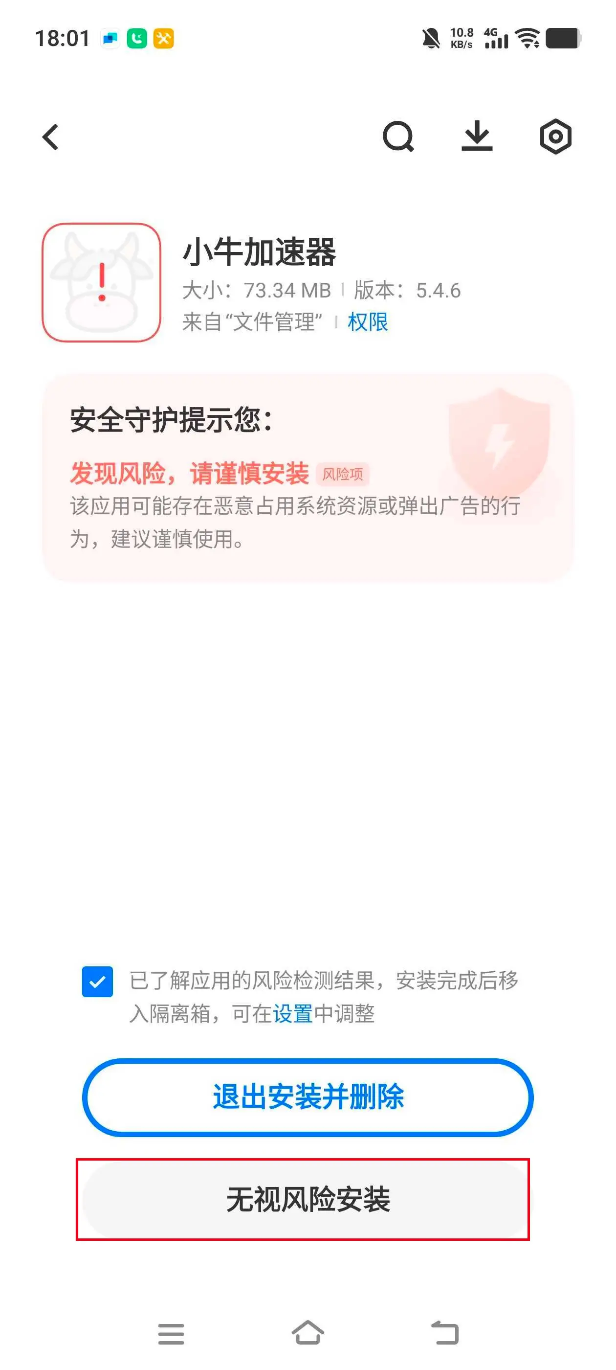 点击“无视风险安装”。