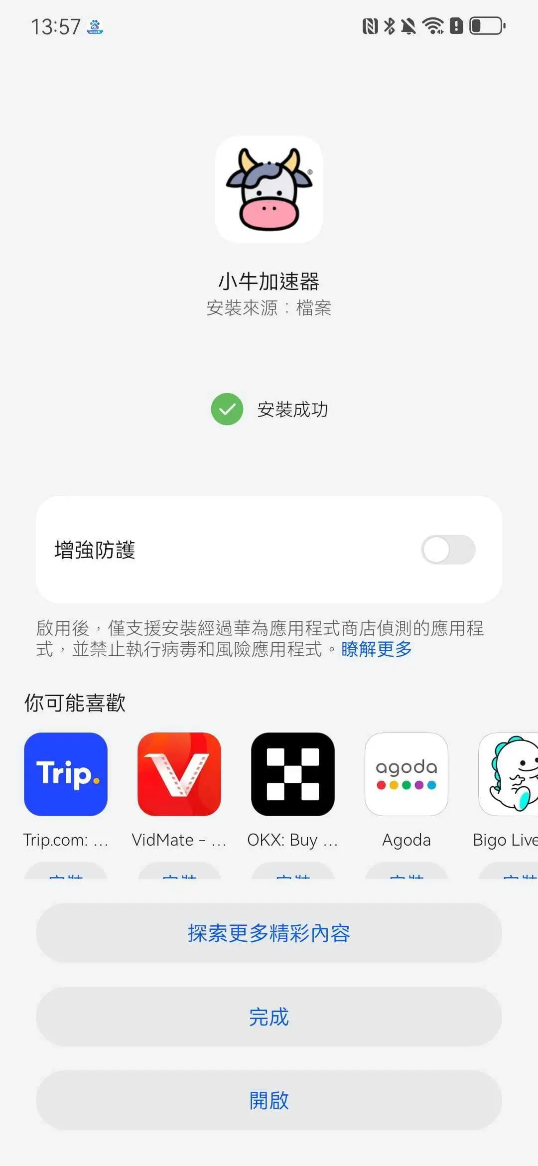 安裝完成。