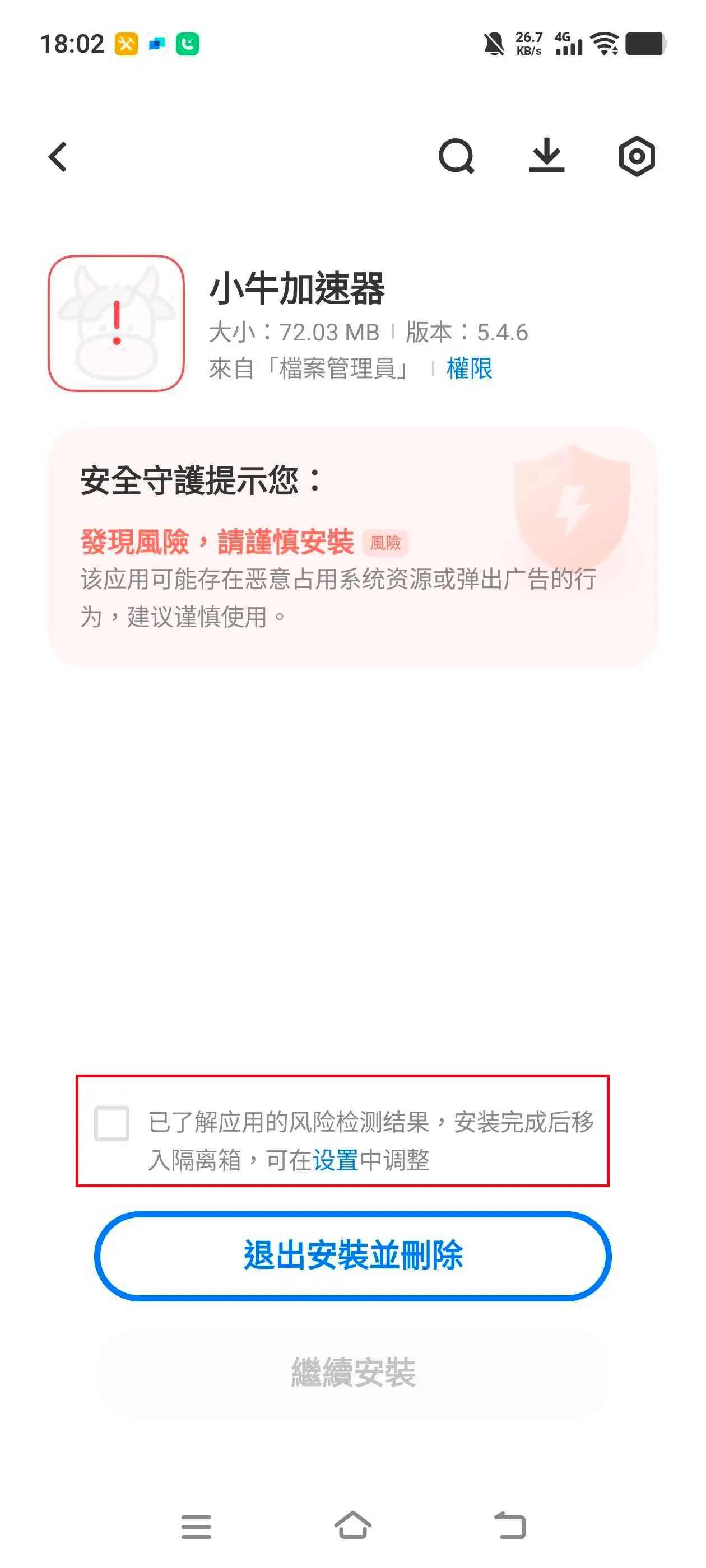 點擊「已瞭解應用風險檢查結果」。
